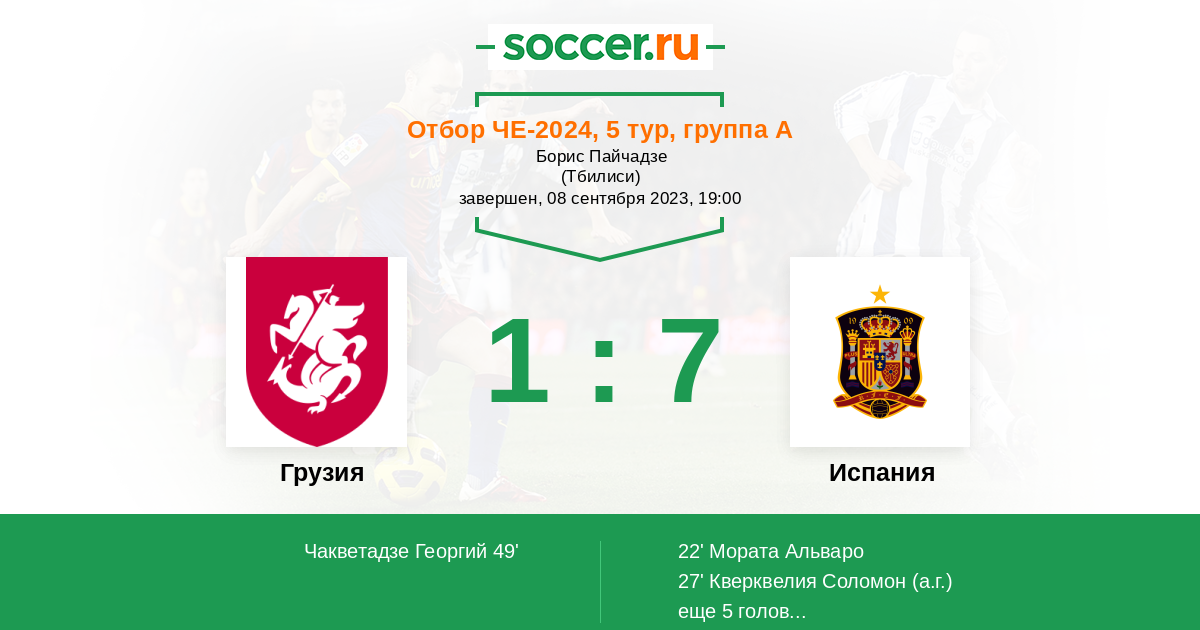 Протокол матча Грузия против Испания