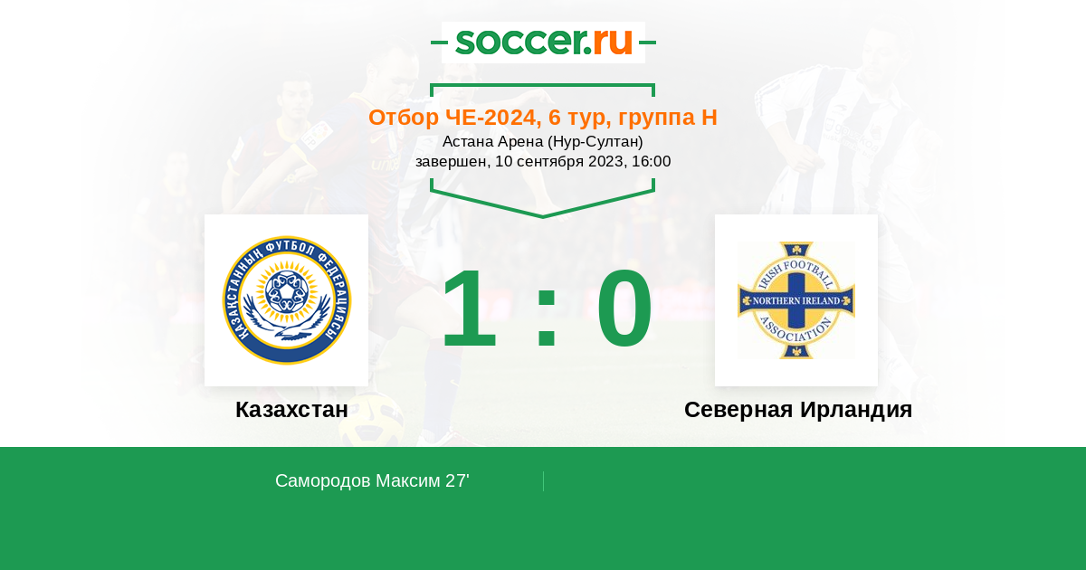 Протокол матча Казахстан против Северная Ирландия
