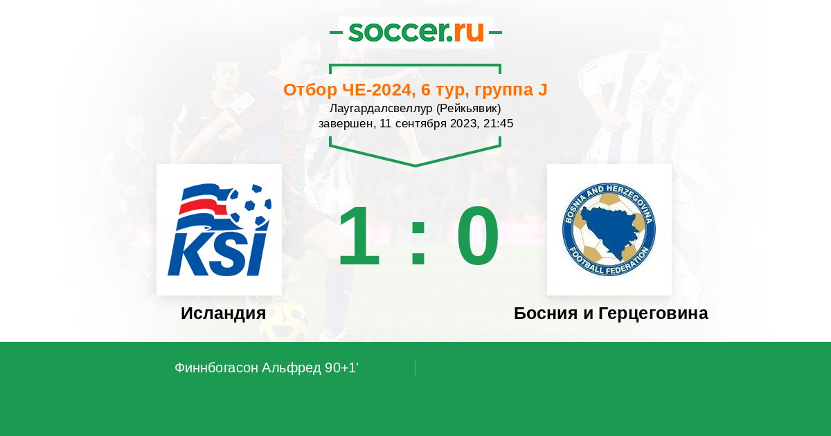 Протокол матча Исландия против Босния и Герцеговина