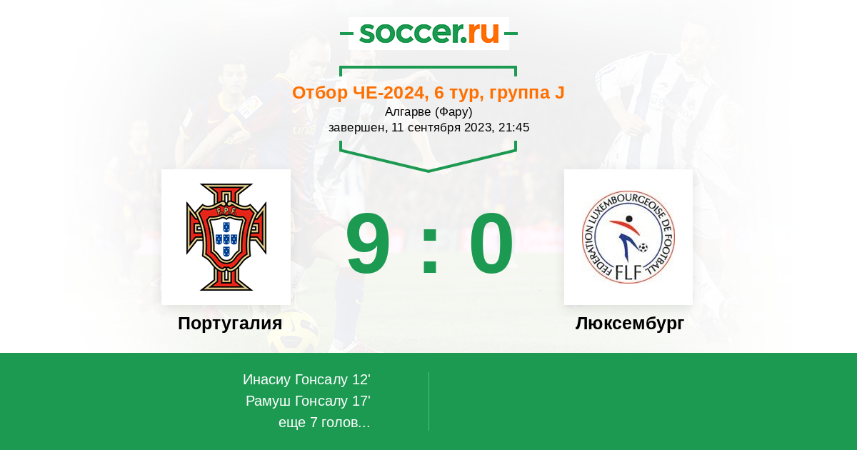 12' (1:0) Инасиу Гонсалу (14) (Фернандеш Бруну (8))