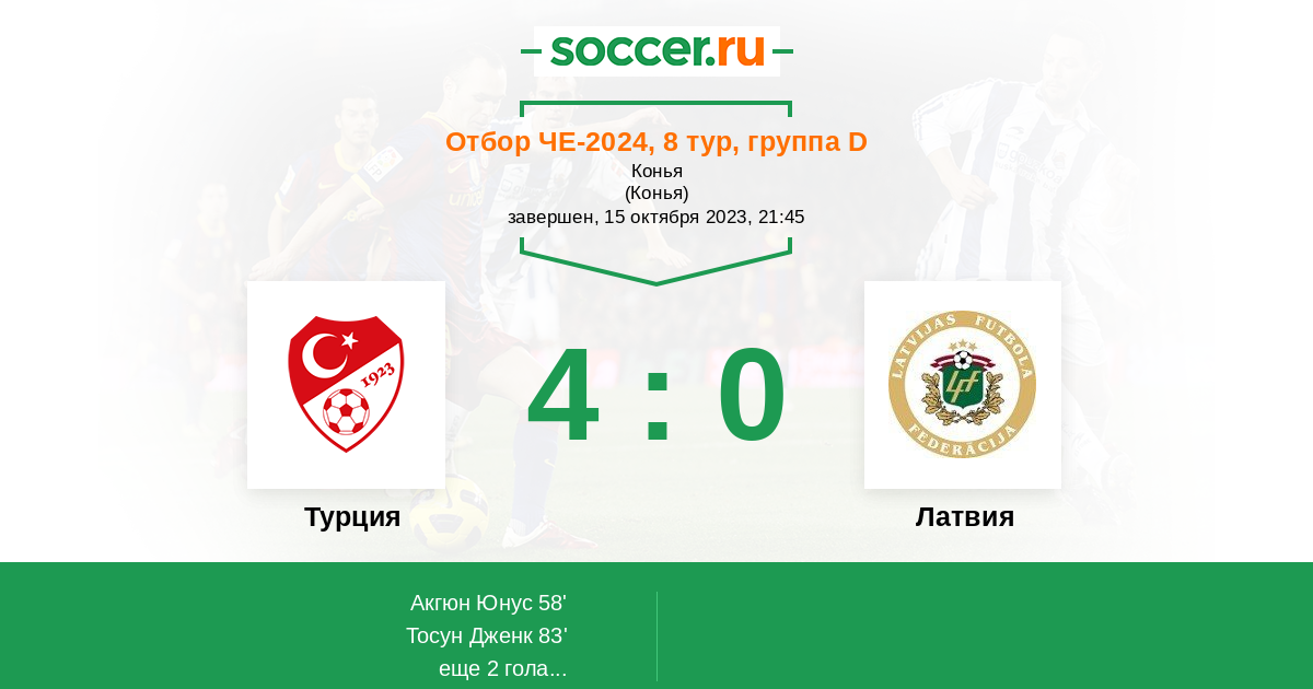 Протокол матча Турция против Латвия