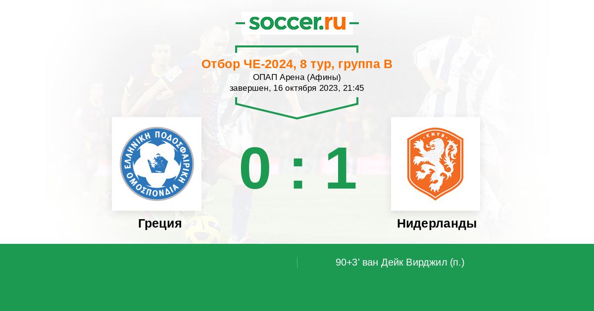 Протокол матча Греция против Нидерланды