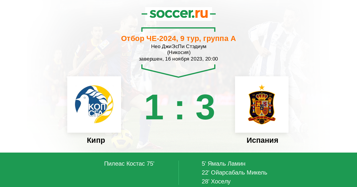 Протокол матча Кипр против Испания
