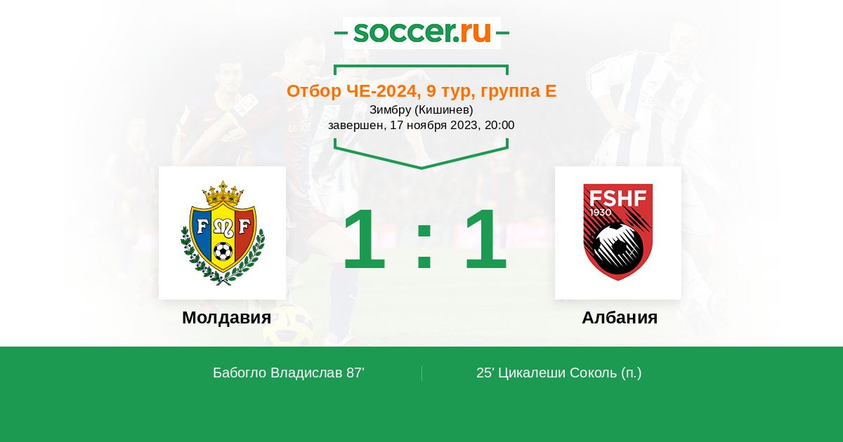 Албания в последних встречах выглядит крайне уверенно и выиграла трижды подряд, но все эти три матча были домашними. На выезде же албанцы почти не выигрывают и регулярно пропускают. Впрочем, хорошая форма подопечных Силвиньо должна помочь им добиться нужного результата, чтобы решить вопрос с выходом на чемпионат Европы досрочно, и добыть как минимум ничью. Игра должна получиться результативной ― обе команды неплохо играют в атаке, а Албанию на выезде подводит защита.