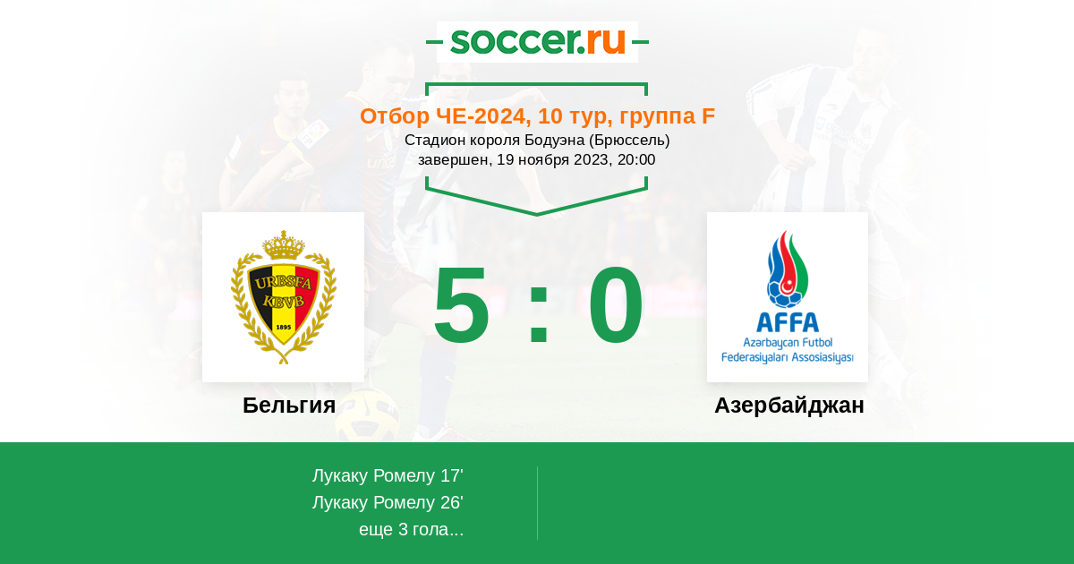Протокол матча Бельгия против Азербайджан