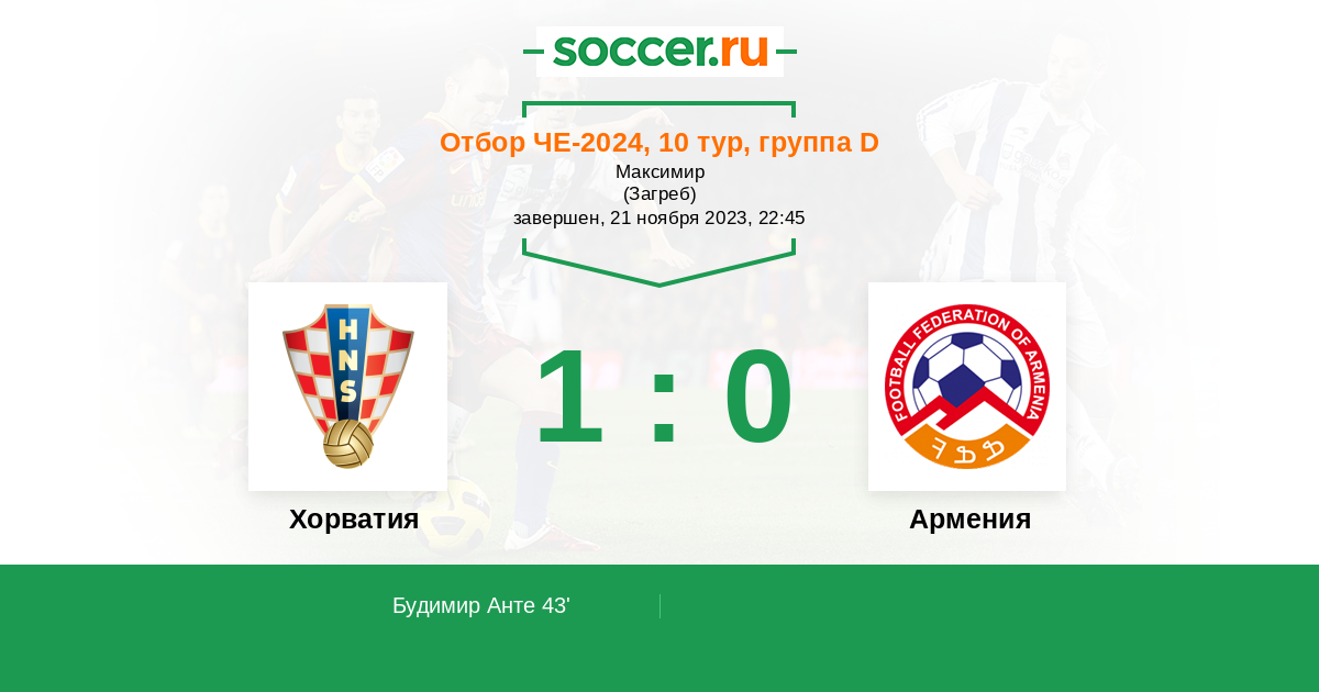 Протокол матча Хорватия против Армения