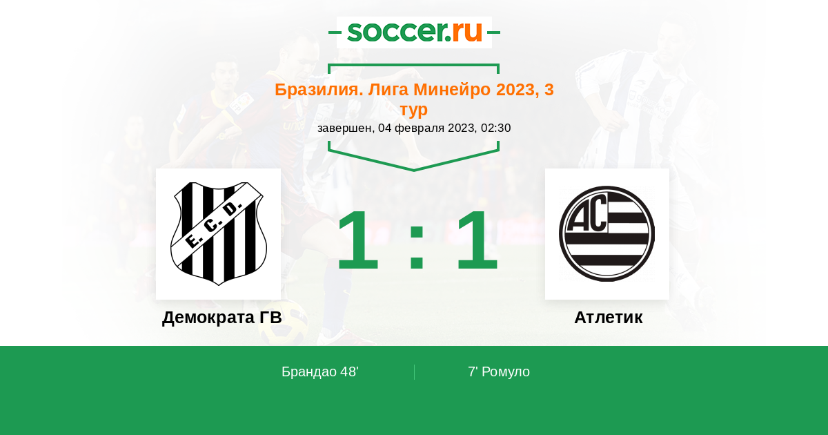 Брандао 1:1 48’