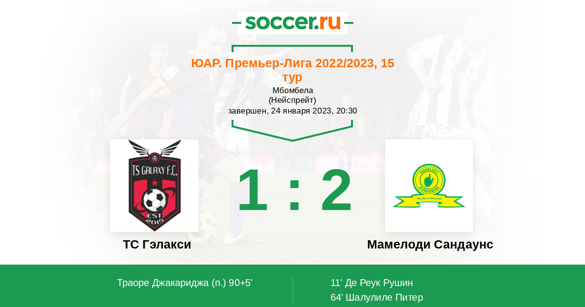 Протокол матча ТС Гэлакси против Мамелоди Сандаунс