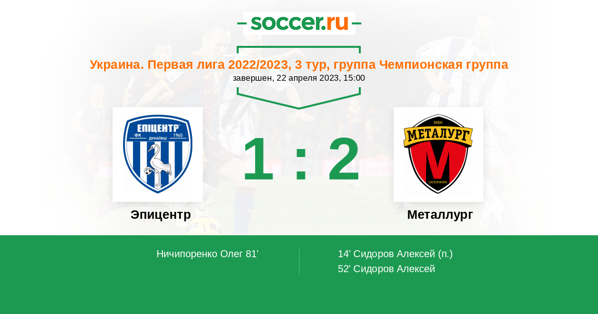 81' (1:2) Ничипоренко Олег
