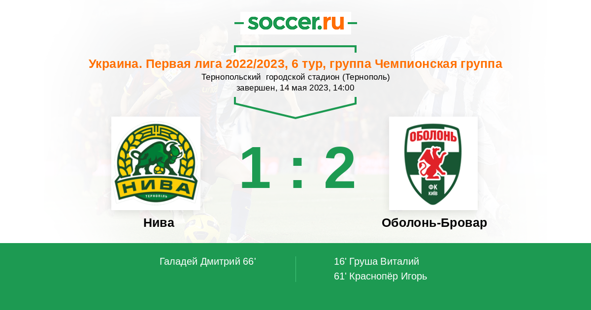 Протокол матча Нива против Оболонь-Бровар