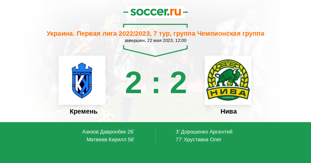 Протокол матча Кремень против Нива
