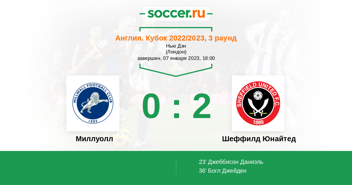 Протокол матча Миллуолл против Шеффилд Юнайтед