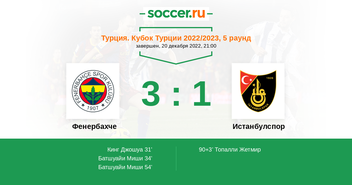 Протокол матча Фенербахче против Истанбулспор