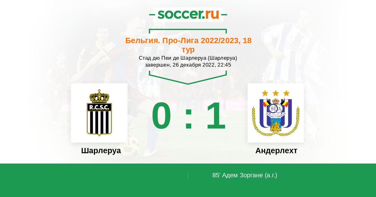 Протокол матча Шарлеруа против Андерлехт