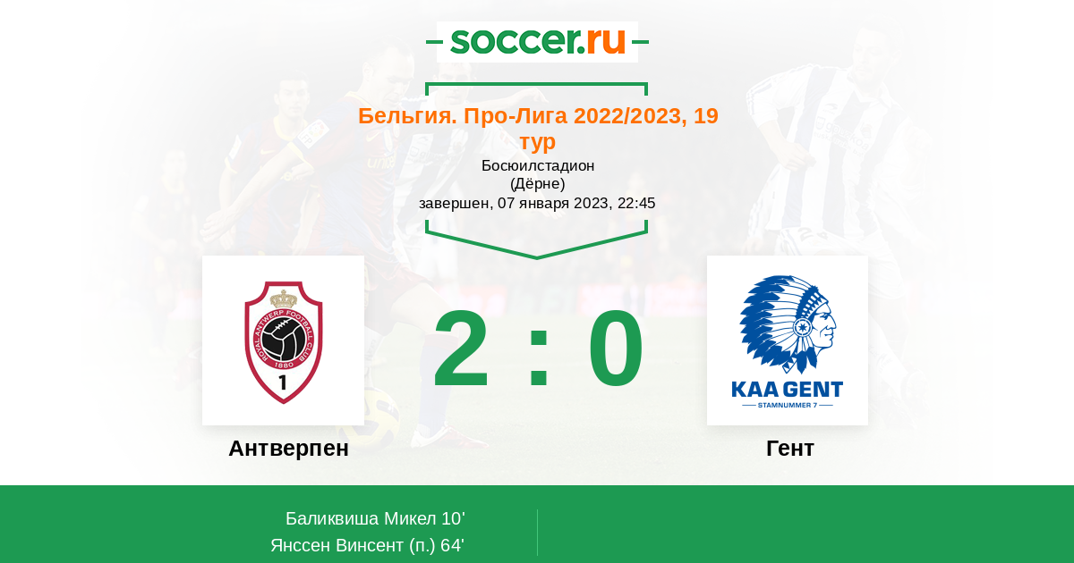 Протокол матча Антверпен против Гент