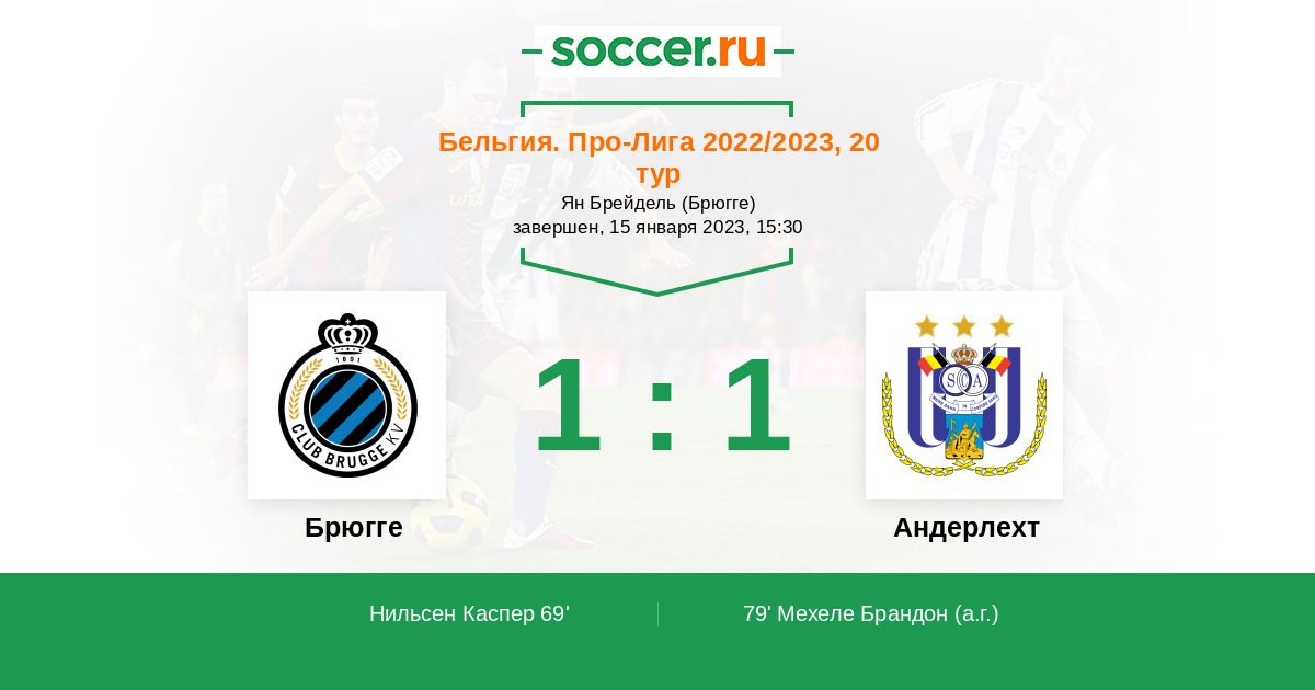 Протокол матча Брюгге против Андерлехт