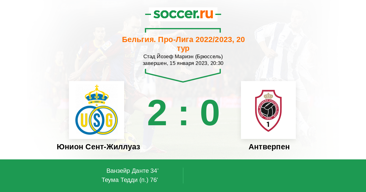 Протокол матча Юнион Сент-Жиллуаз против Антверпен