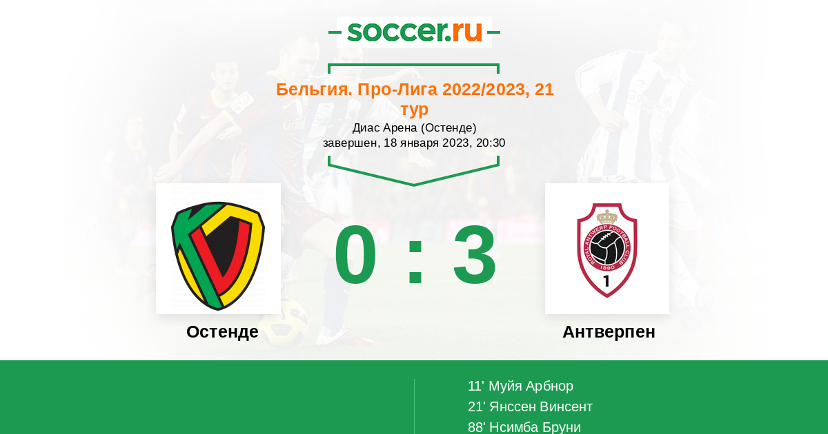 Протокол матча Остенде против Антверпен