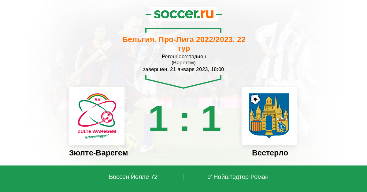 Протокол матча Зюлте-Варегем против Вестерло