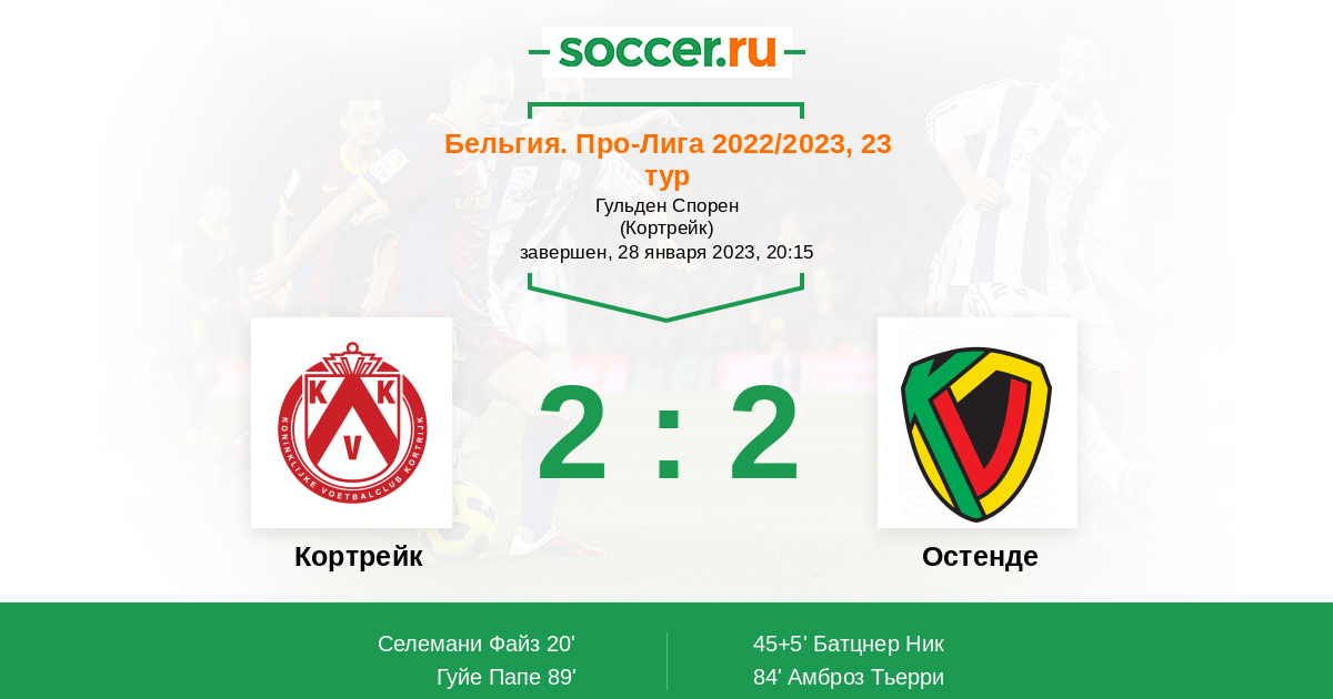 Протокол матча Кортрейк против Остенде