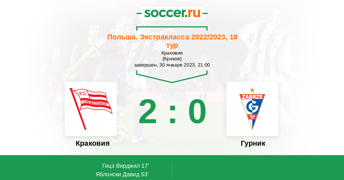 Я думаю что в этом противостоянии более чем явным фаворитом на победу выглядит команда хозяев поля Краковия . Но и команда гостей Гурник не будет мальчиками для битья и вполне возможно могут зацепиться за очки . Победа хозяев поля или ничья .