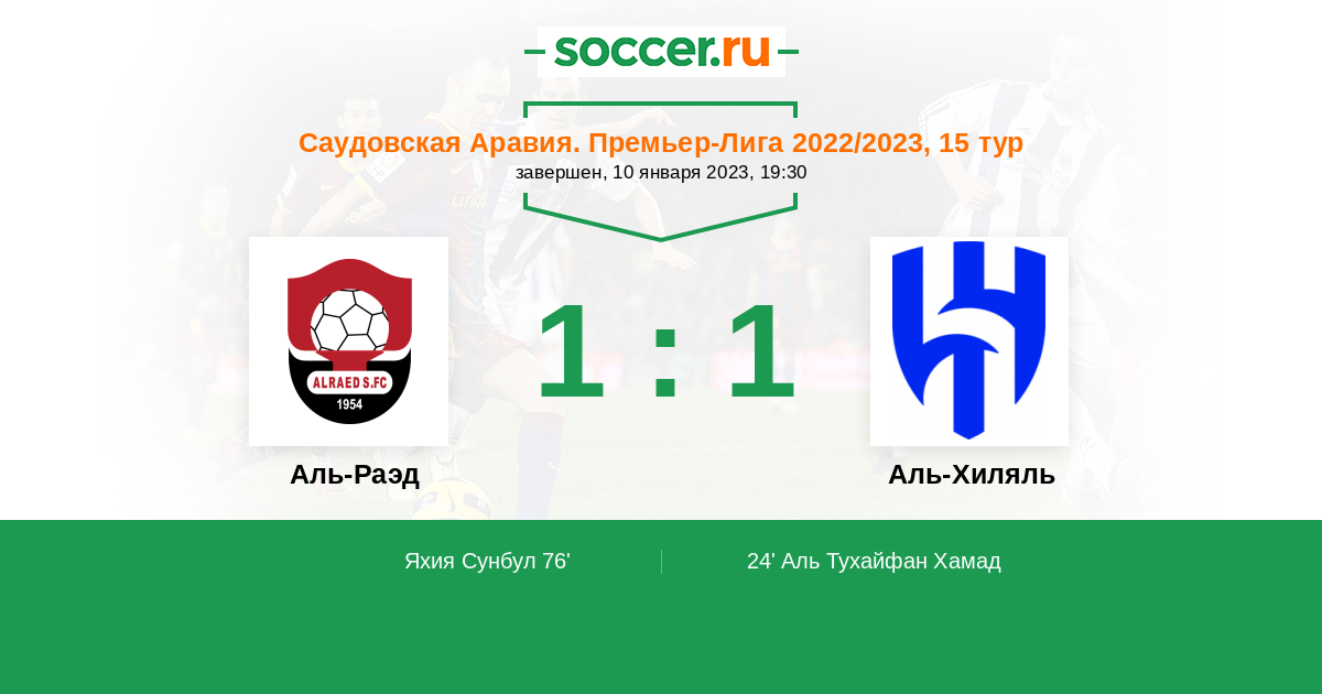 Протокол матча Аль-Раэд против Аль-Хиляль