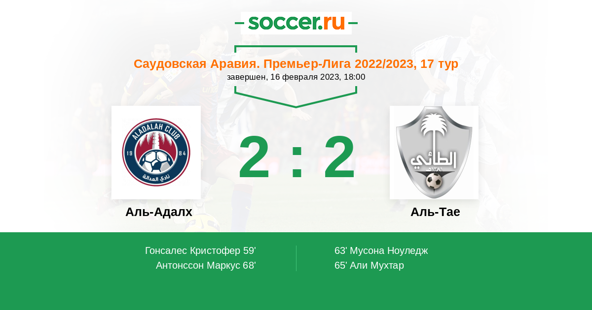 Протокол матча Аль-Адалх против Аль-Тае