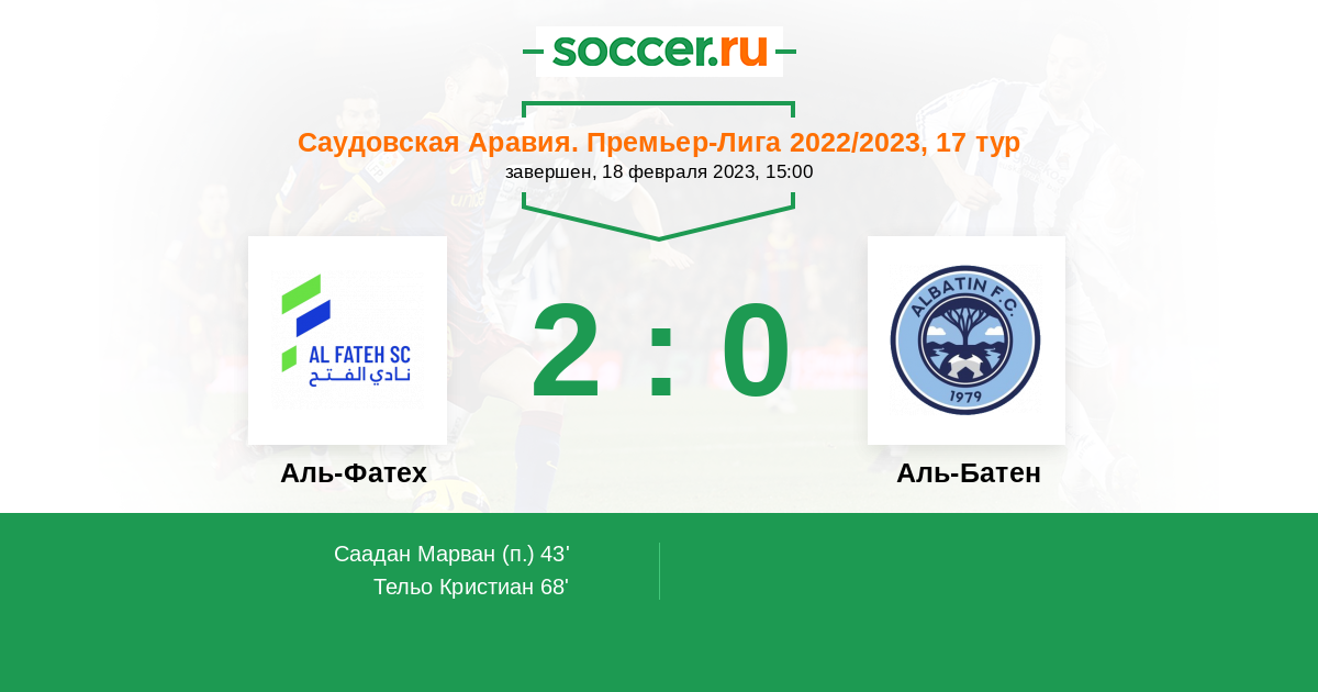 Протокол матча Аль-Фатех против Аль-Батен