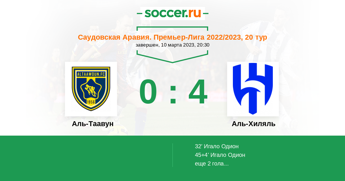 Протокол матча Аль-Таавун против Аль-Хиляль