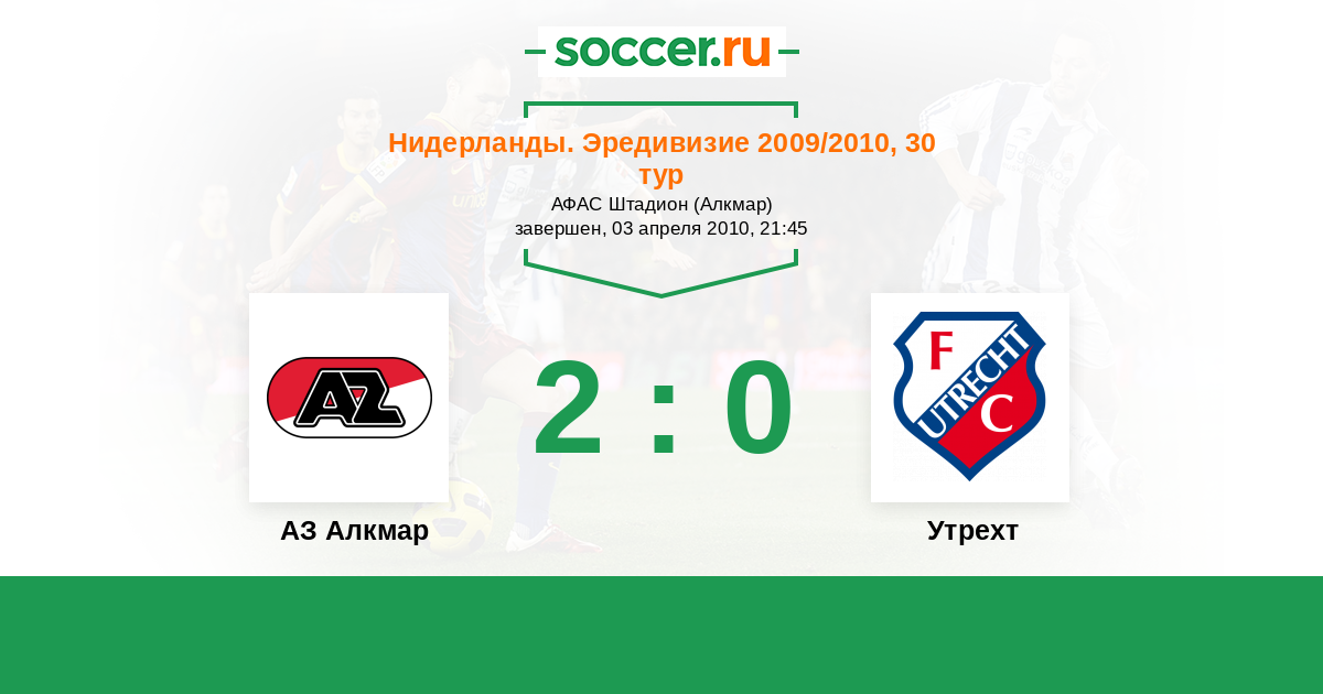 Нидерланды. Эредивизи 26.09.2009 Утрехт Логотип футбольный клуб Утрехт 1:0 Логотип футбольный клуб АЗ Алкмар АЗ Алкмар