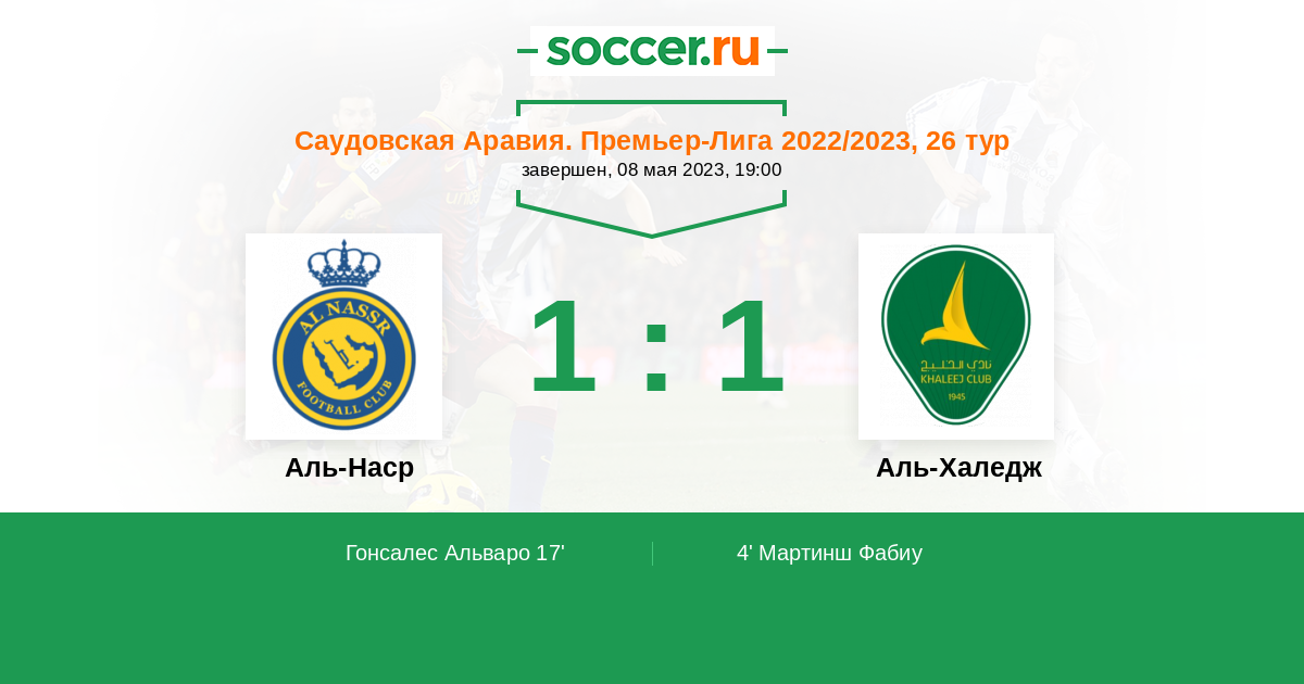Протокол матча Аль-Наср против Аль-Халедж