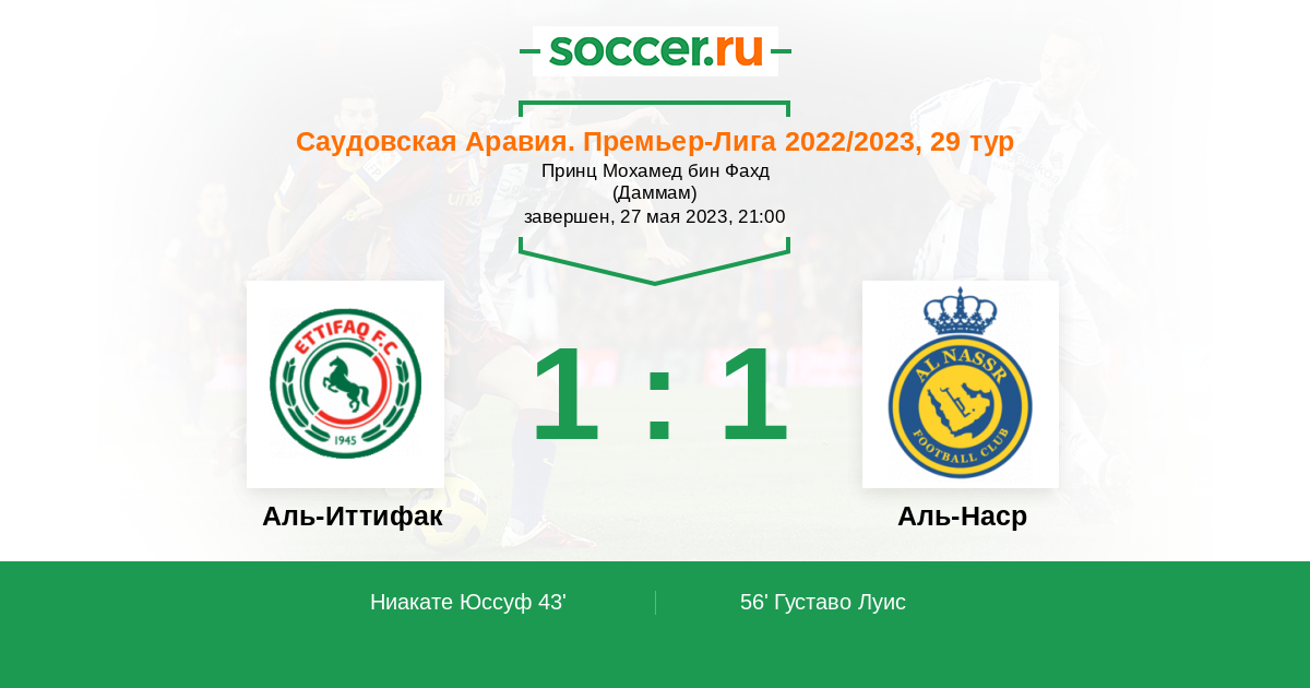 43' (1:0) Ниакате Юссуф (18) (Аль-Мовалад Саид (2))