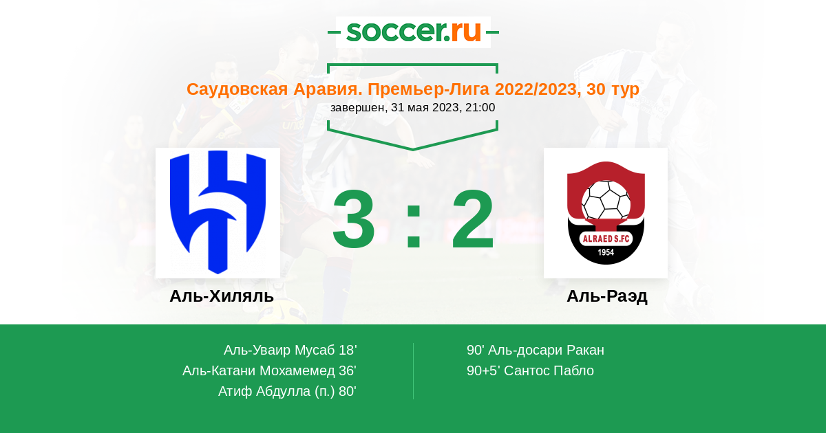 Гол90+5' (3:2) Сантос Пабло (28) (Аль-Шехри Яхья (8))