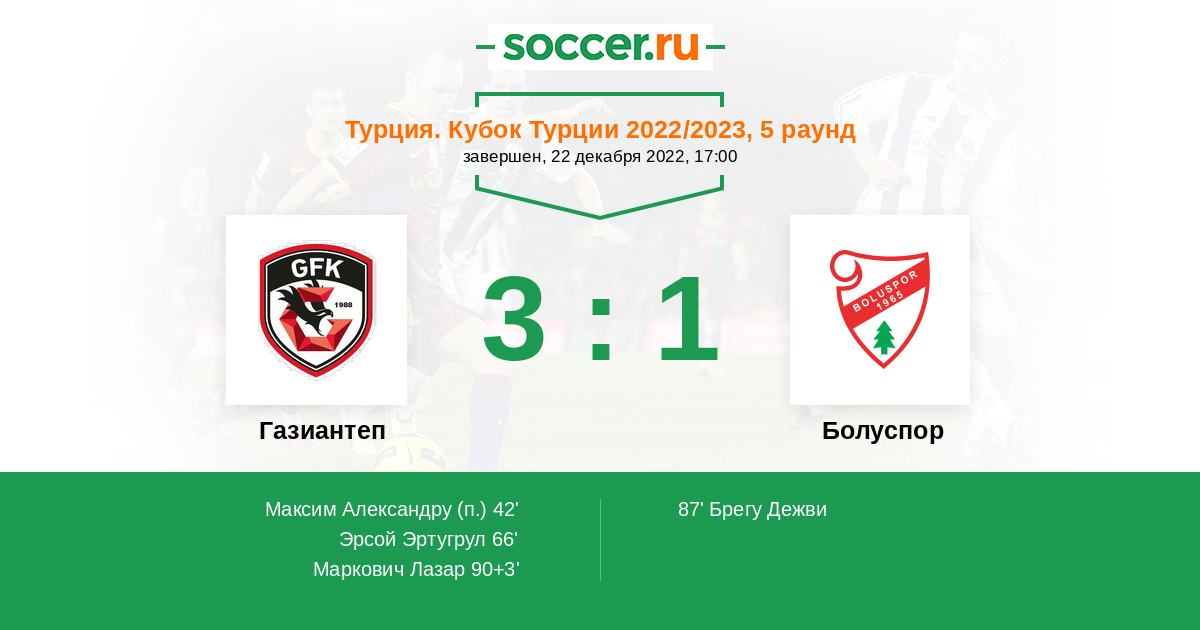 Протокол матча Газиантеп против Болуспор