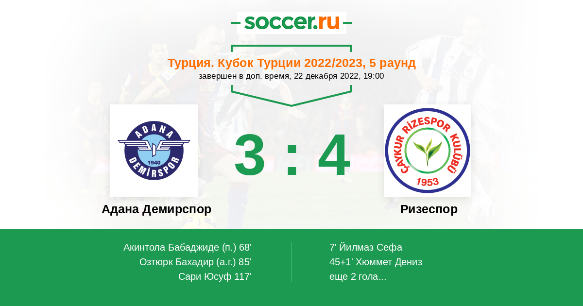 7' (0:1) Йилмаз Сефа (10) (Хюммет Дениз (19))