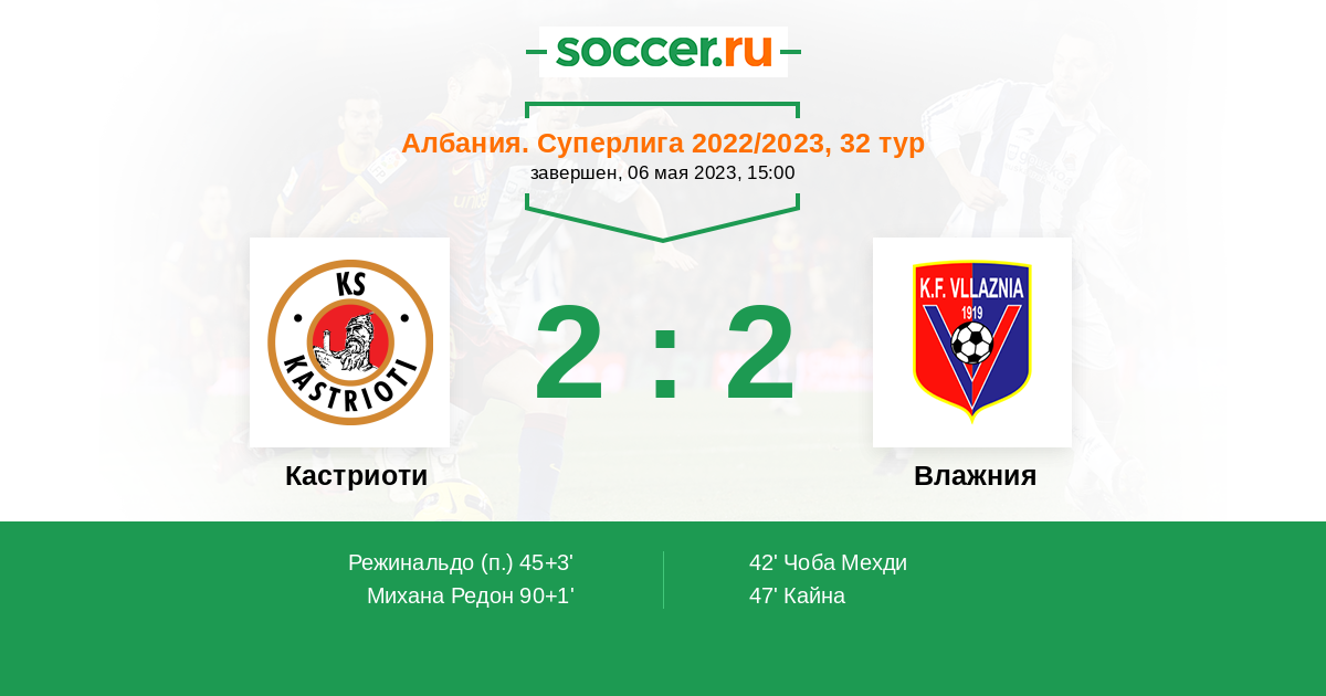 Протокол матча Кастриоти против Влажния