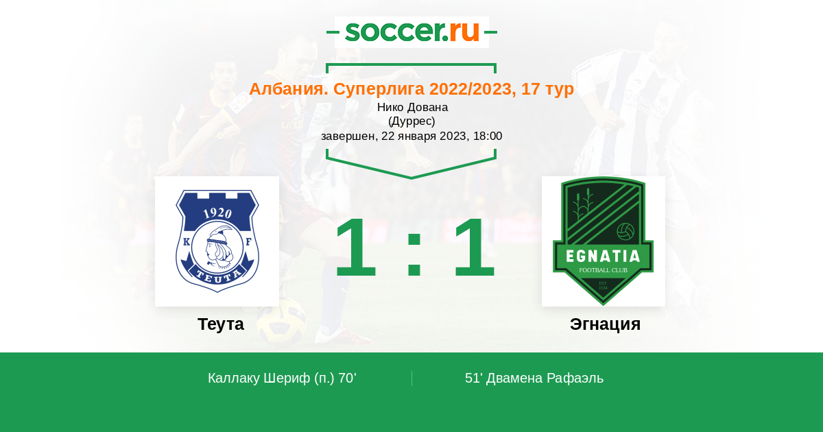 Протокол матча Теута против Эгнация