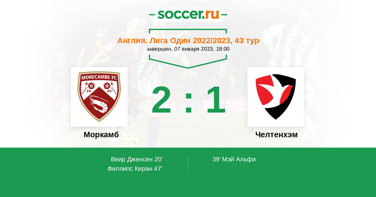 Протокол матча Моркамб против Челтенхэм