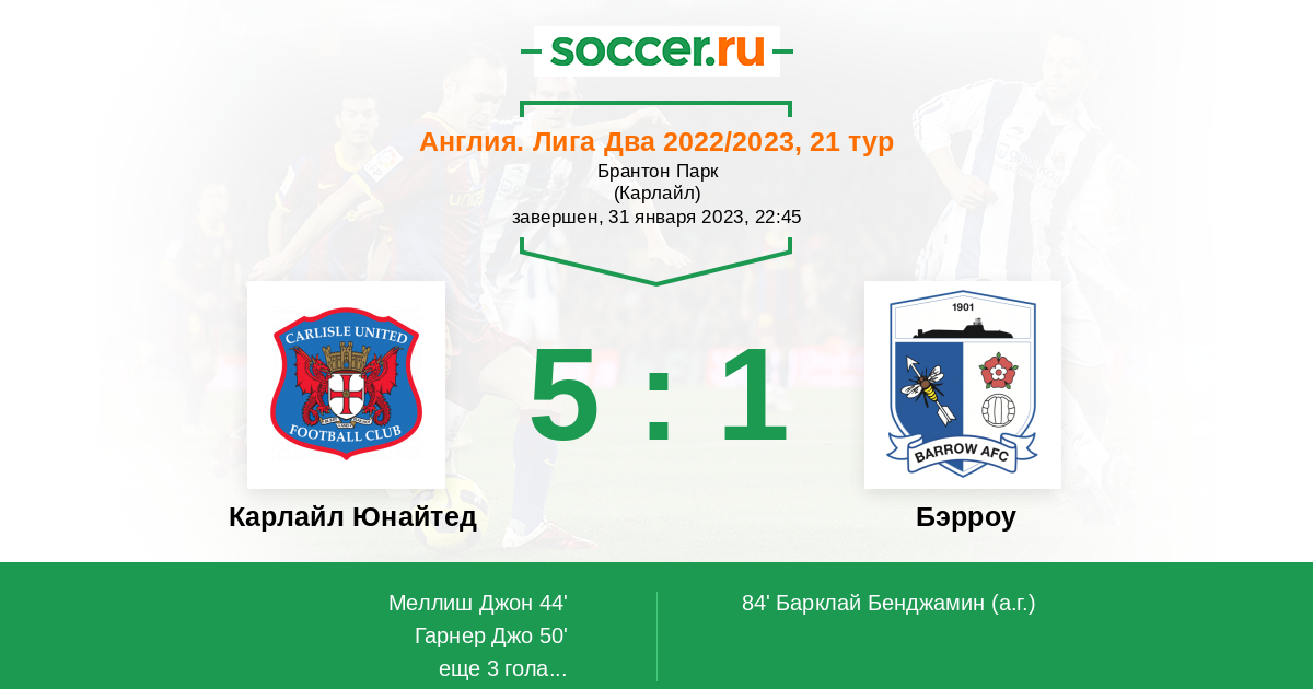Протокол матча Карлайл Юнайтед против Бэрроу