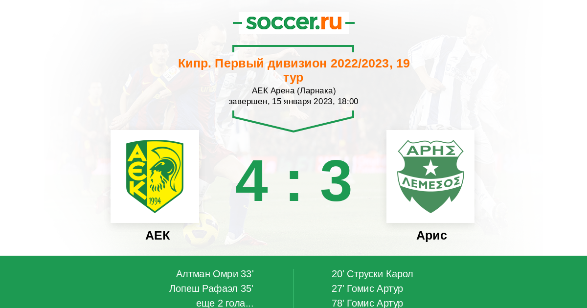 Протокол матча АЕК против Арис