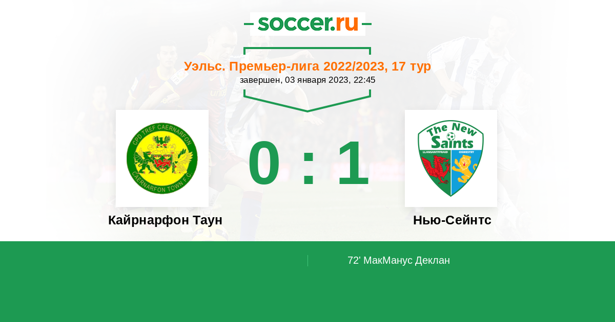Протокол матча Кайрнарфон Таун против Нью-Сейнтс