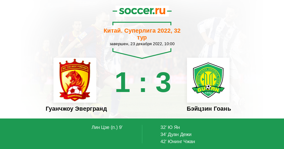 Протокол матча Гуанчжоу Эвергранд против Бэйцзин Гоань
