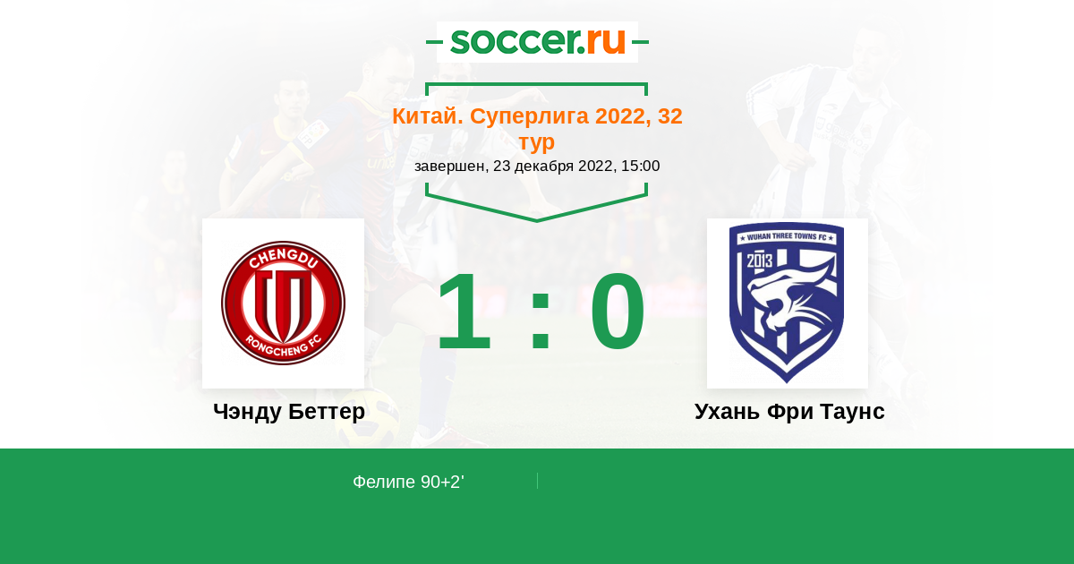 Протокол матча Чэнду Беттер против Ухань Фри Таунс