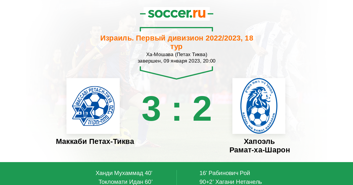 Протокол матча Маккаби Петах-Тиква против Хапоэль Рамат-ха-Шарон