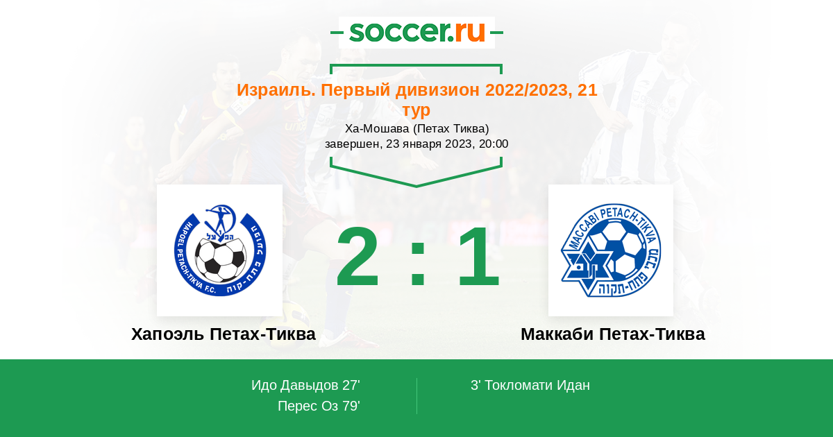 Протокол матча Хапоэль Петах-Тиква против Маккаби Петах-Тиква