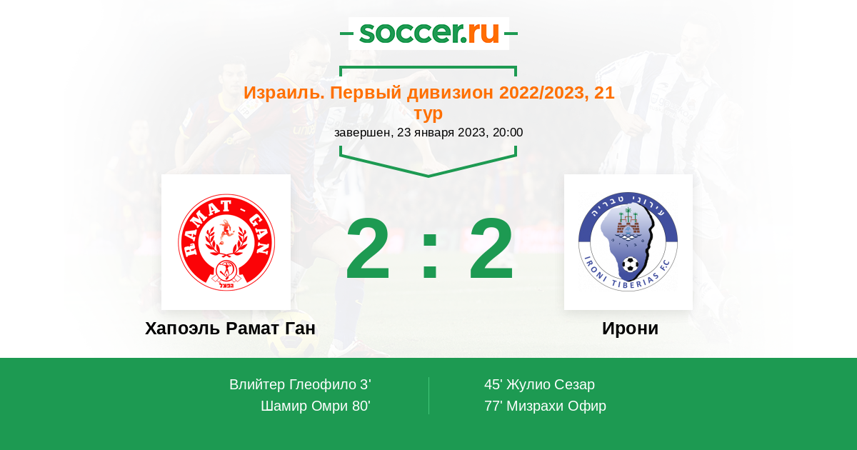 Протокол матча Хапоэль Рамат Ган против Ирони