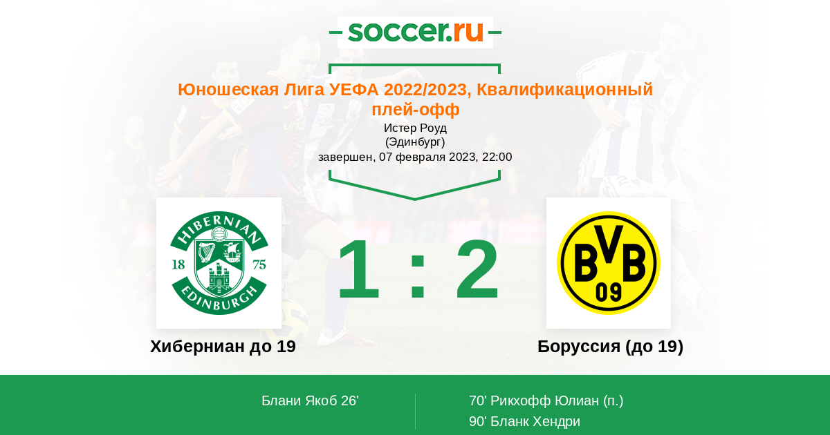 Протокол матча Хиберниан до 19 против Боруссия (до 19)
