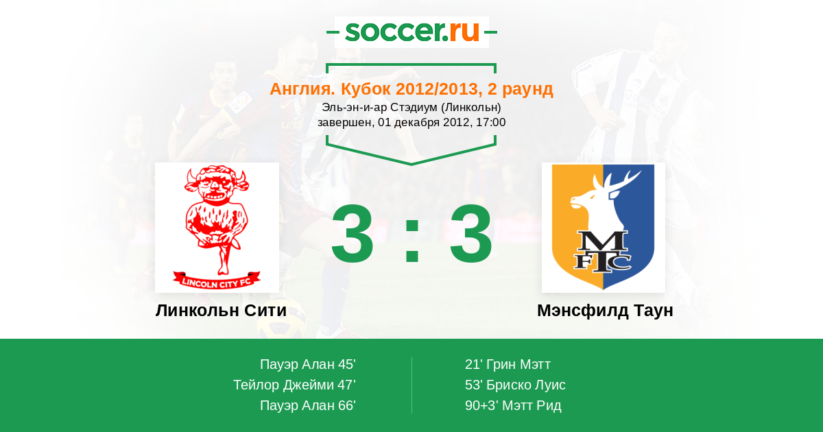 Протокол матча Линкольн Сити против Мэнсфилд Таун