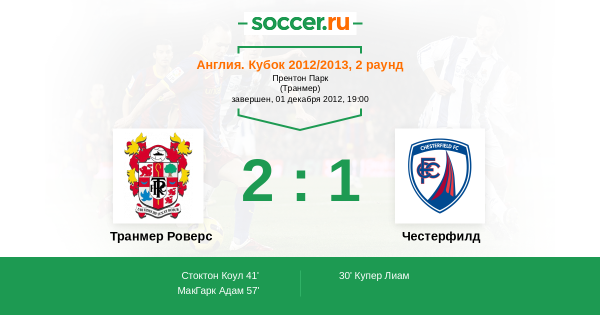 Протокол матча Транмер Роверс против Честерфилд