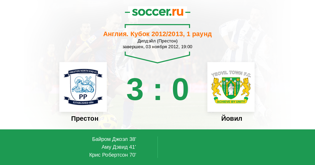 Протокол матча Престон против Йовил